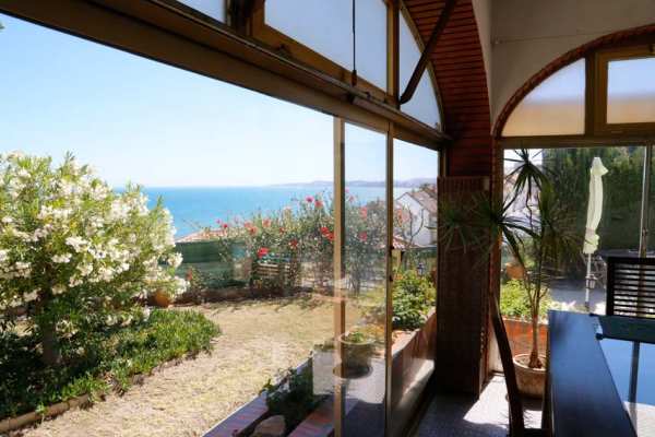 The sea view can be admired from the edge of your swimming pool, the conservatory or sun porch, from the living room and both master bedrooms. Even from the top bathroom you can enjoy the seaview! The house has a unique round construction type and this allows you to have an almost 360 degrees view from the upper balcony of the master bedroom.